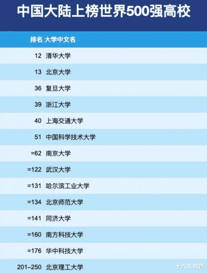 中国大陆上榜世界500强高校